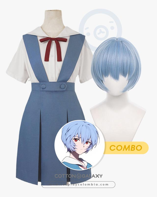 Evangelion Rei Ayanami escolar Traje y Peluca Cosplay